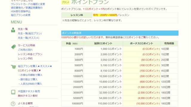 レッスンのコースはポイントを購入して、購入したポイント分だけ勉強するポイントプランと、毎月定額でレッスンを受け放題になる、毎日プランの2種類があり細かく値段設定がされております。
