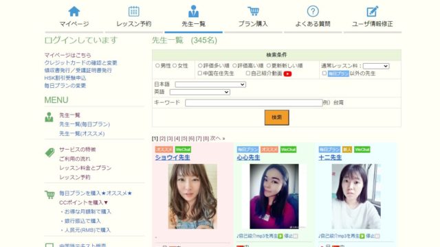 この時中国語にまだ自信が無い人は、先生の中から日本語が喋れる先生を選ぶようにしましょう。