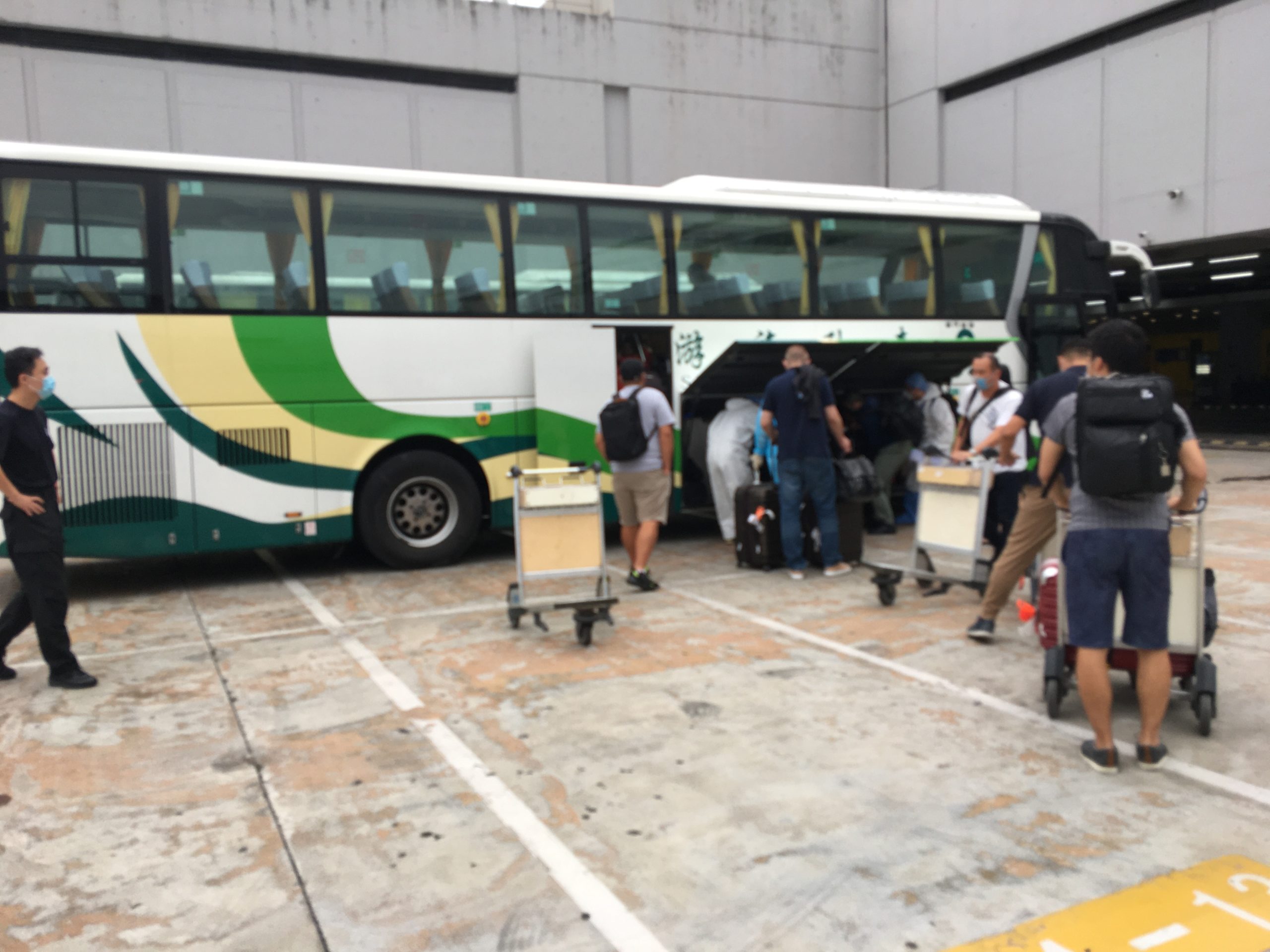 手続きが終わると「バスが来るまで待て」と言われるので、その場で待機。恐らく次の飛行機の到着するのを待っていた様で、この時は約3時間くらいその場で待機となった。バスが来ると職員から声が掛かるので案内にしたがってバスに移動する。